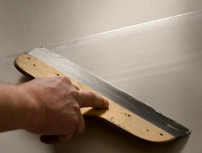 вам нужно правильно выбрать инструмент. Профессионалы работают широким шпателем с лезвием от 30 см и более, накладывая на него массу более узких. Держать его в руке довольно сложно. От неравномерно распределенного усилия смесь пойдет волнами и один из краев обязательно оставит глубокую бороздку в самый неподходящий момент, когда все будет готово. Новичкам удобнее загружать смесь на широкую лопатку, а узким – снимать и разравнивать. Это позволит сэкономить время и получить хорошее качество. Чтобы выровнять углы, можно использовать специальный угловой шпатель.