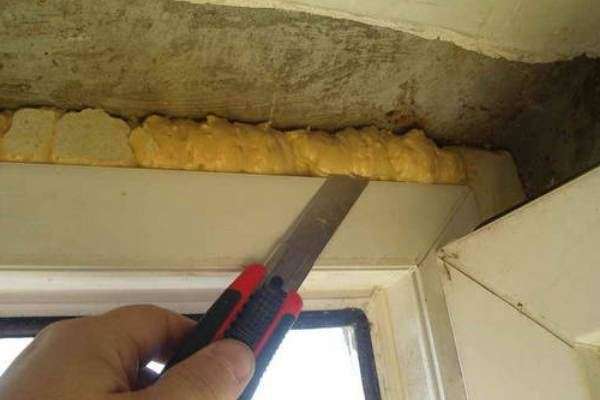 Совет. Разрезать поролон нужно не заподлицо с каркасом, а немного глубже. После этого срез обрабатывают герметиком для защиты пены от конденсата, что снижает ее теплоизоляционные свойства. Поролон удобно разрезать тонким канцелярским ножом.
