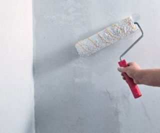 После обработки стен грунтом наносится состав из гипса и бетона – он больше подходит под покраску. Специалисты рекомендуют использовать шпатлевку и отделочный материал на основе одного компонента.