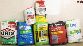 - Тип материала. Если в смеси присутствует крупный речной песок, его используют для выравнивания бетонного или кирпичного фундамента. Если стены ровные, для работы подойдет финишная шпатлевка, содержащая мелкие компоненты, гипс или портландцемент.
