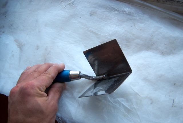 Отдельно необходимо описать принцип работы с углами и откосами. Для облегчения обработки можно сделать более толстый слой, который затем выравнивается шлифованием. Сцена сложна даже для профессионалов.