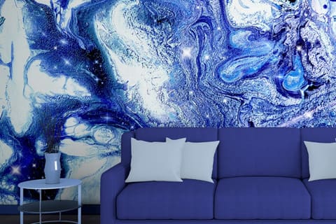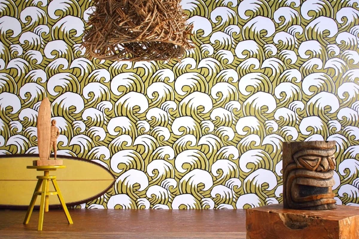 Такие полотна лучше использовать локально – например, на стене. И поддержите более спокойными обоями, краской или декоративной штукатуркой.