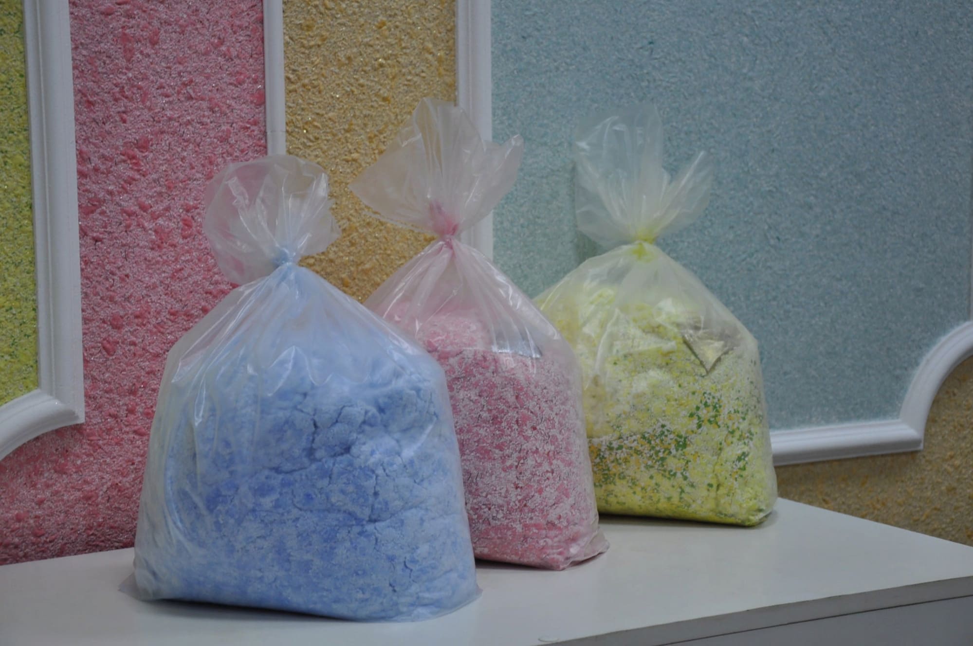 Первое сырье для жидких обоев можно смешивать, создавая новые текстуры