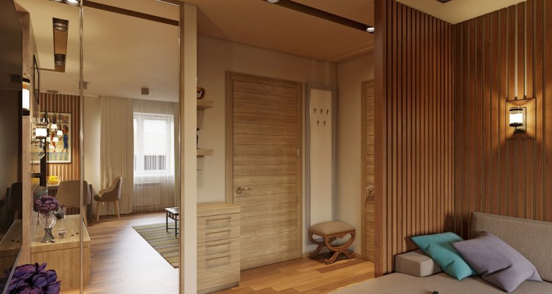 Визуально отделка занимает большую часть помещения и, соответственно, основную часть палитры.