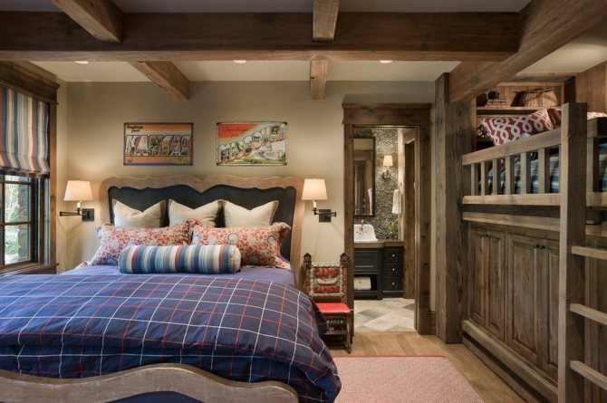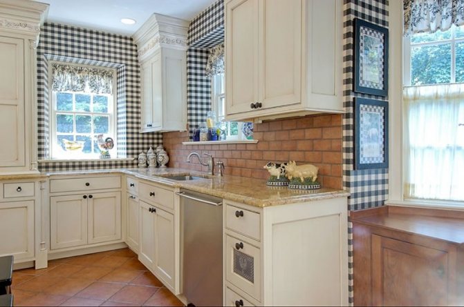 Один из стилей, также допускающий использование таких «изюминок», – кантри. Его корни также уходят в глубину веков и традиции устройства жилища людей. Интересно, что клетка может состоять как из светлых, так и из темных элементов одновременно. Этот стиль также предполагает использование других тематических элементов, таких как мебель, домашний текстиль, предметы декора и т д. Основные цвета, которые популярны в стиле кантри, более мягкие и светлые тона.
