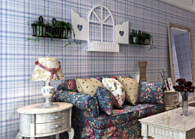 Клетчатые обои отлично впишутся в деревенский стиль помещения: кантри, прованс. Для любой комнаты, оформленной в стиле деревенского дома, будет актуальна клетка. Самое главное – выбрать небольшую клетку с яркими цветами.